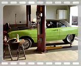 Here's some eye and ear candy from yesterday. This is my best friend's '70 Dart after we changed out the gears and installed a different transmission in my garage. Specs on the car: 360 Magnum crate engine, 727, 8-3/4" now back to 3.23's, aluminum down flow radiator, electric fan, A/C delete, P/S delete, radio delete, heater controls delete, Wilwood front discs, unknown headers, Hush Thrush mufflers, fuel cell, traction bars, and BIG ASS back tires.