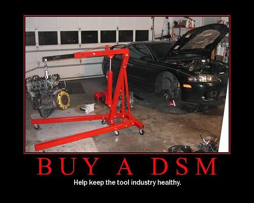 The 1G('90-'94) 4G63T engine's had a 6bolt main and were more reliable than the 7bolt 4G63Ts in the 2g('95-'99) DSMs. Many guys do 1G engine swaps in their 2Gs. But, being a DSM, it still has plenty of other things that like to break on it.